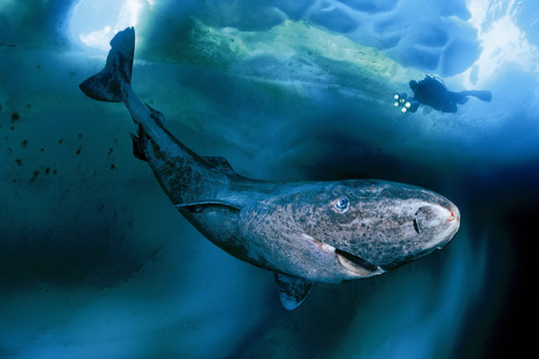 Ein Eishai in den arktischen Gewässern Kanadas.