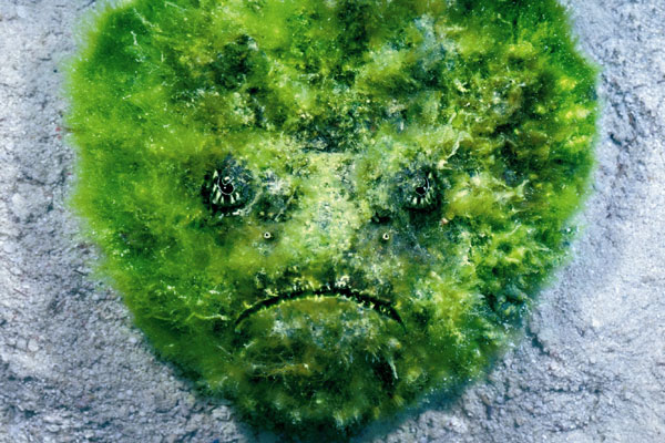 Der giftige Steinfisch ist vollkommen von Algen überwachsen.